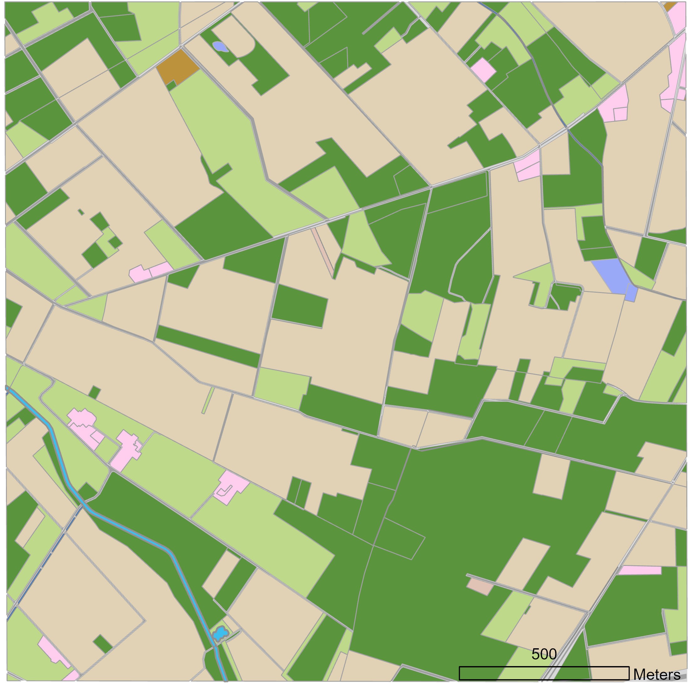 | Riparian | Riparian zone of ditches, streams, rivers, ponds, etc. | Typically, covered by herbaceous riparian vegetation, hedges or trees. |