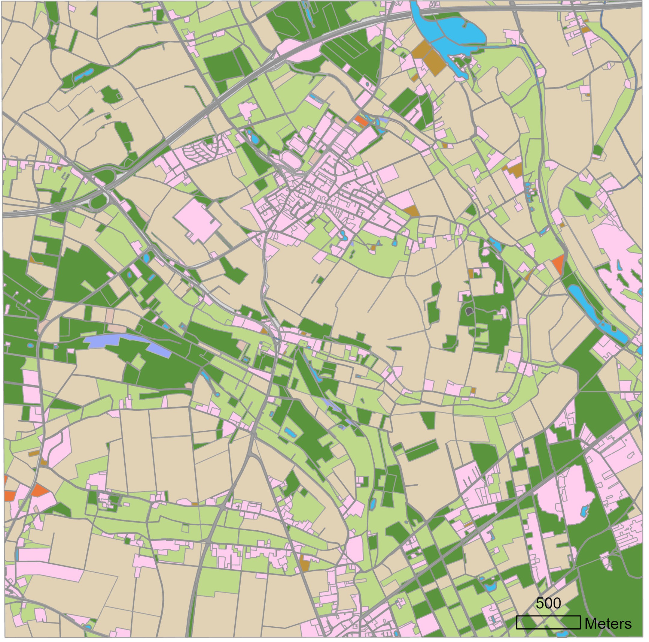 | Field margin | Small margin often bordering to (rural) roads. | Immediate margin to rural roads often of construction material (fundament), ie, do hardly represent natural soil. Land cover often (semi-) natural herbaceous vegetation or hedges. For hedges, care need to be taken as farmers might accept (promote) hedges at their in-field margins, ie, the hedge occurs on the property of the farmer. |